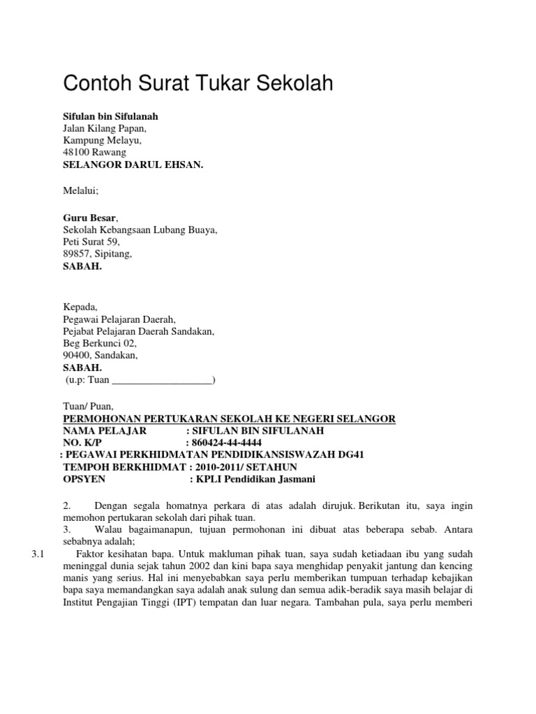 Contoh Surat Tukar Sekolah Pdf